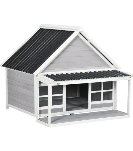 Pawhut Cuccia per Cani da Esterno in Legno e PVC con Portico e Finestre, 126x118x105cm, Grigio Aosom