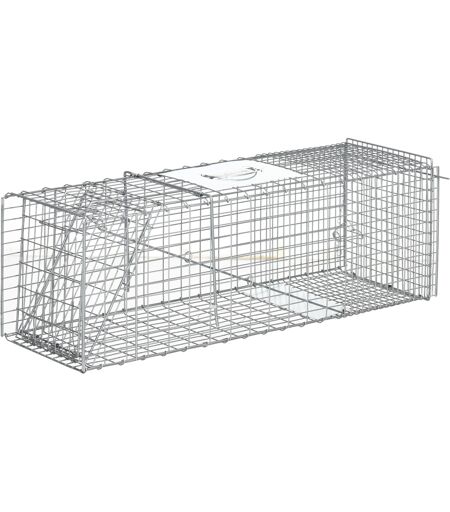 Outsunny Gabbia Trappola per Animali Vivi Pieghevole in Acciaio, 93x31x34.5cm, Argento Aosom