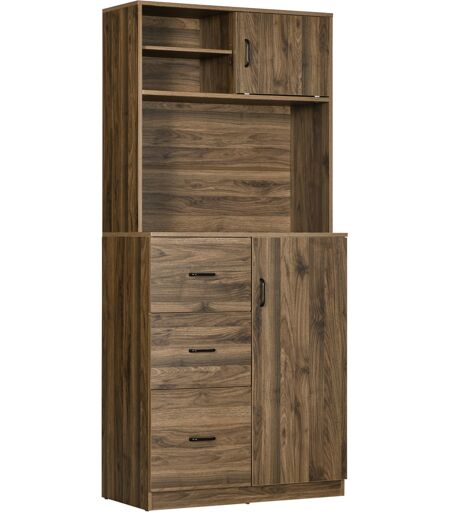 Homcom Armadietti Cucina con 3 Cassetti e Credenza Moderna, Mobile Dispensa per Cucina e Soggiorno in Legno, 80x40x178cm, Noce Aosom