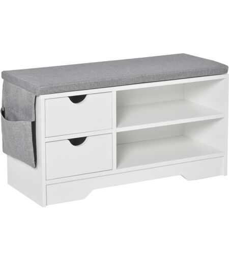 Homcom Panca Scarpiera Salvaspazio in Legno con 2 cassetti, 2 ripiani aperti e 1 tasca l aterale, per soggiorno, ingresso e camera, Bianca Aosom Italy
