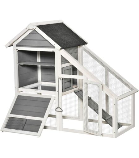 PawHut Conigliera in Legno con Area Aperta e Rampa, 140x65x120 cm