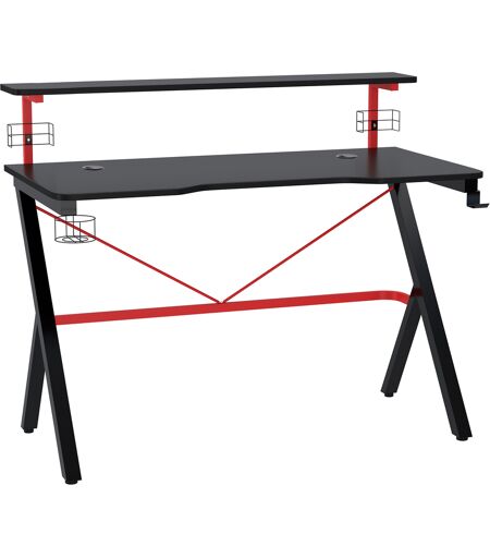 Homcom Scrivania Gaming con Ripiano Monitor, Scrivania Porta PC Gaming con Gancio e Portabicchieri Nera e Rossa, 120x60x97cm Aosom