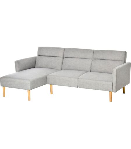 Homcom Divano Letto con Penisola in Tessuto Effetto Lino 3 Posti con Schienale Reclinabile e Gambe in Legno, 207x146x80cm, Grigio Aosom