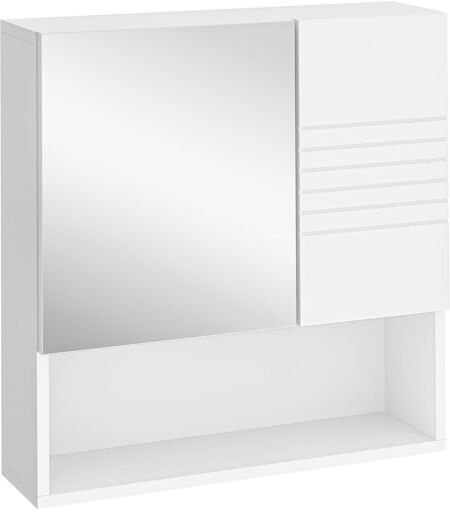 Kleankin Armadietto Specchiera Bagno, Mobiletto Bagno Pensile con Fissaggio a Muro, 54x15x55cm, Bianco Aosom