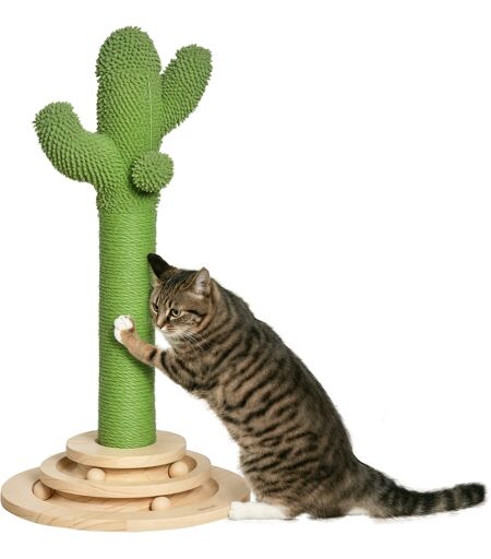 Soddisfa il naturale istinto dei gatti di graffiare e giocare con questo originale albero tiragraffi a forma di cactus firmato PawHut! Ha un design compatto, con rivestimento in corde sisal e pallina appesa. È dotato di una base robusta in legno di pino con due piste con palline, per offrire un divertimento extra ai tuoi gatti. Stimola la loro voglia di giocare e arreda la casa in modo unico con il nostro tiragraffi! ...