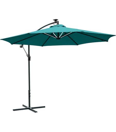 Outsunny Ombrellone da Giardino a Braccio con Manovella e 8 Strisce LED a Energia Solare Φ295x245cm, Verde Aosom