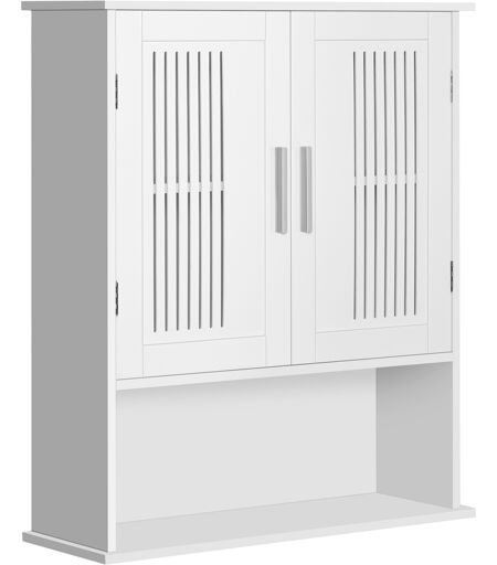 Kleankin Mobiletto da Bagno a Muro Salvaspazio con Armadietto a 2 Ante e Ripiano Inferiore Bianco, 60x20x70cm Aosom