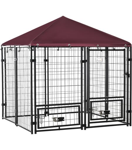 Pawhut Recinto per Cani da Esterno,Box per Cani in Acciaio con Serratura, 2 Ciotole Girevoli e Copertura in Tessuto Oxford,141L x 141P x 153Acm Aosom