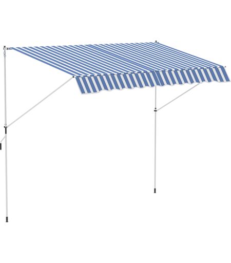 Outsunny Tenda da Sole a Bracci per balcone 3x1.5m con Manovella, Tenda da esterno in Metallo con Pali di Supporto, Blu e Bianco Aosom Italy