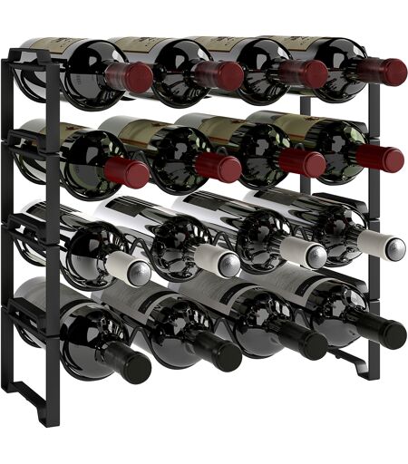 Homcom Portabottiglie a 4 Livelli a Onda Impilabili per 16 Bottiglie, in Metallo, 42.5x16.5x41 cm, Nero