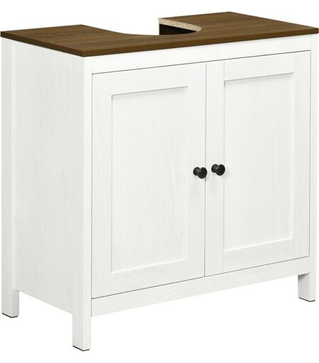 Kleankin Mobile Sotto Lavabo Bagno in Legno con Ripiano Interno Regolabile, 60x30x60 cm, Bianco e color Noce