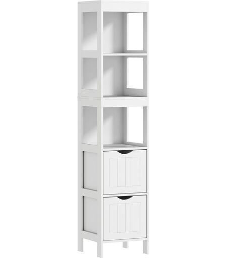 Homcom Mobile Bagno con 3 Ripiani Aperti e 2 Cassetti in Legno, 30x30x141.2 cm, Bianco