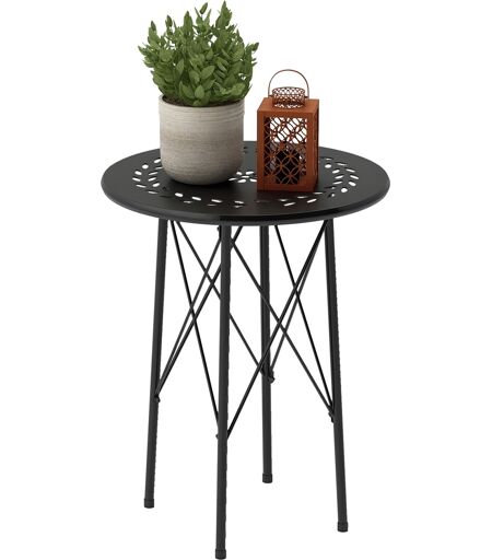 Outsunny Tavolino da Giardino con Intagli a Fiori e Foglie, Tavolo da Esterno e Interno, Ø40x50 cm, Nero