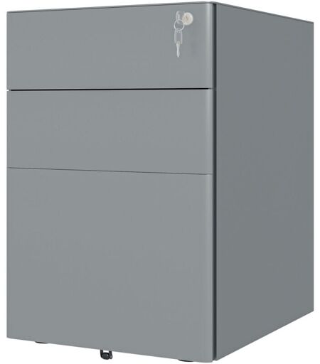 VINSETTO Cassettiera da Scrivania 3 Cassetti con Serratura e Rotelle Grigio -