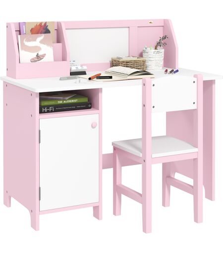 Questo set HOMCOM comprende un tavolo scrivania e una sedia per bambini per offrire ai più piccoli uno spazio personale per leggere, studiare e giocare, mentre la lavagna inclusa è utile per esprimere la loro creatività. Dotato di vari spazi portaoggetti, la struttura aiuta a mantenere l'ambiente pulito e ordinato. Realizzato in MDF e legno di pino con bordi arrotondati per la sicurezza, il suo design elegante si adatta perfettamente a ogni cameretta. ...