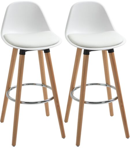Homcom Set 2 Sgabelli da Bar Stile Nordico con Schienale, Cuscino e Poggiapiedi, Legno e Plastica, Bianco