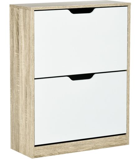 Homcom Mobile Scarpiera Salvaspazio Slim a 2 Cassetti per 8 Paia di Scarpe 62.5x26x81 cm, Legno e Bianco Aosom Italy