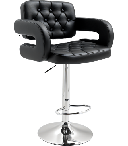 Homcom Sgabello da Bar Alto con Schienale e Braccioli, Girevole con Altezza Regolabile e Poggiapiedi, Finta Pelle Nera