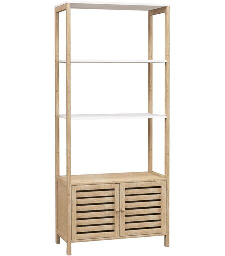 HOMCOM - Mobile da Bagno 3 Ripiani e Armadietto Inferiore in Bambù Bianco e Legno