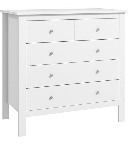 Homcom Cassettiera 5 Cassetti con guide in metallo e sistema antiribaltamento per Camera e Soggiorno in Legno Bianco, 79x39.5x80.5 cm Aosom Italy