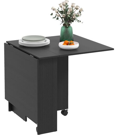 Homcom Tavolo Pieghevole Salvaspazio a 2 Ribalte per 6 Persone con Ripiani e Ruote, Nero