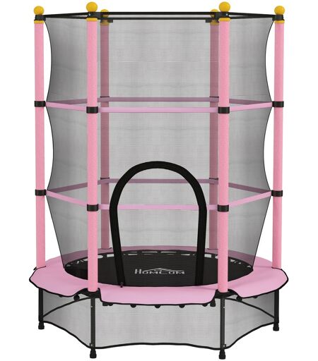 Homcom Tappeto Elastico per Bambini con Rete di Sicurezza e Pali Imbottiti Età 3-10 Anni, Ø140 x 190 cm, Rosa