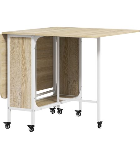 Assicurati questo tavolo da pranzo pieghevole di HOMCOM per risparmiare spazio quando serve e non preoccuparti più delle dimensioni. Realizzato con un design espandibile, in cui entrambi i lati si possono alzare, la struttura crea una superficie aggiuntiva e si ripiega in un'unità compatta senza problemi. Il tavolo è dotato anche di un ripiano contenitore centrale per riporre oggetti di diverse dimensioni e di 6 ruote per spostarlo facilmente. ...