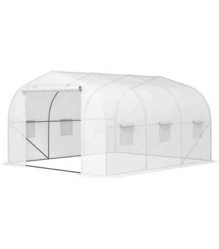 Outsunny - Serra per Orto con 6 Finestre e Porta a Rullo in Acciaio e pe Bianco