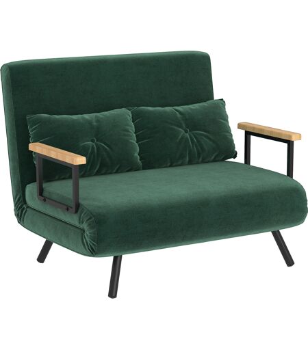 Homcom Divano Letto 3 in 1 in Tessuto Effetto Velluto con Schienale Regolabile e 2 Cuscini, 102x73x81 cm, Verde