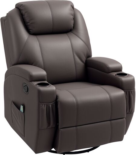 Homcom Poltrona Massaggiante con rotazione a 360° e reclinazione, 8 Punti Massaggio e 5 Modalità, 84x92x109cm, Marrone Scuro Aosom Italy