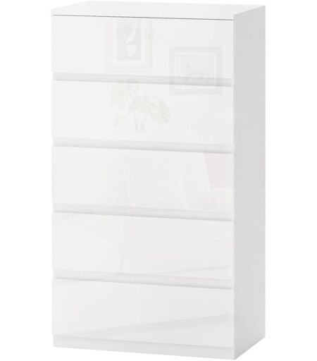 HOMCOM - Cassettiera Moderna 5 Cassetti in Truciolato 55x33x100 cm Bianco Lucido