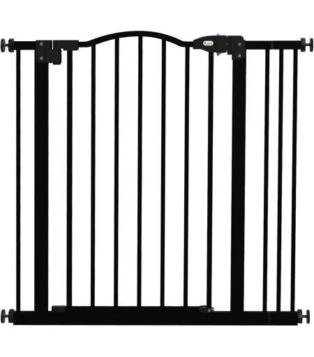 Pawhut Cancelletto per Cani Estensibile con 2 Blocchi e Chiusura Automatica, in Metallo e Plastica, 74-87x78 cm, Nero