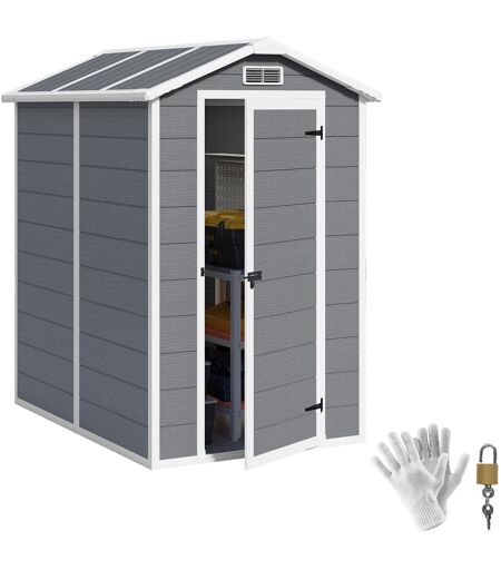 Outsunny Casetta da Giardino in Resina con Pavimento, Porta con Blocco e Finestra, 1.3 x 1.8 m, Grigio