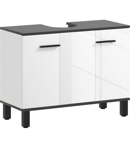 Ottimizza lo spazio in bagno con il mobile sotto lavabo di HOMCOM, ideato con un intaglio a U che ti consente di posizionarlo comodamente sotto alla maggior parte dei lavandini. Dotato di uno scaffale interno regolabile su tre altezze, permette di tenere in ordine tutti i tuoi accessori di diverse dimensioni. Il design elegante in bianco lucido con dettagli colorati su piano, gambe e maniglie, arricchisce l'arredo del tuo bagno. ...