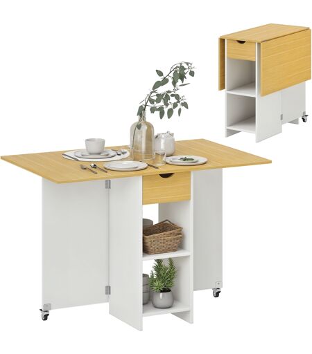 Rivoluziona il tuo ambiente con il tavolo da pranzo pieghevole HOMCOM: accomoda due persone da chiuso e quattro quando è aperto. Dotato di un cassetto e vani aggiuntivi, questo tavolo da cucina è perfetto per tenere a portata di mano oggetti indispensabili a ogni pasto. Include due ruote girevoli con blocco per un comodo movimento. Questo tavolo salvaspazio è ideale per arricchire ogni ambiente di casa con praticità! ...