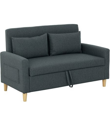 Homcom Divano 2 Posti con Spazio Portaoggetti e Cuscini, in Tessuto Effetto Lino e Legno, 135x72x84 cm, Grigio Carbone