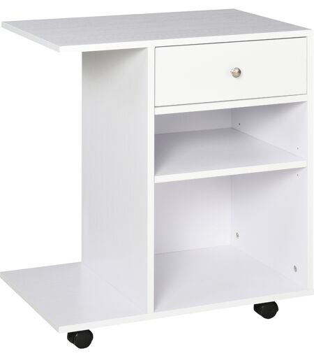 Vinsetto Mobiletto per Stampante in Legno con 4 Ruote, Mensola Regolabile e Piano per CPU, Bianco