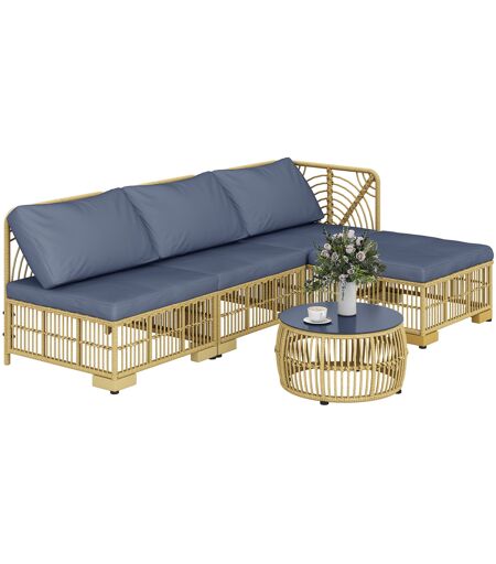 Dai un nuovo look a ogni spazio aperto con questo salotto da giardino composto da un divanetto componibile, poggiapiedi e tavolino Outsunny. Ogni pezzo del set da giardino è realizzato con un solido telaio in acciaio rivestito in rattan PE, che assicurano solidità e resistenza a sole e pioggia. Decorativo e funzionale, il set con tavolino da caffè e divano da giardino ti accompagnerà nei momenti di relax all'aperto. ...