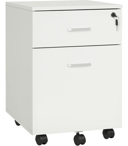 Vinsetto Cassettiera Ufficio a 2 Cassetti con Serratura e 5 Ruote, in Truciolato, 40x49x58 cm, Bianco Aosom