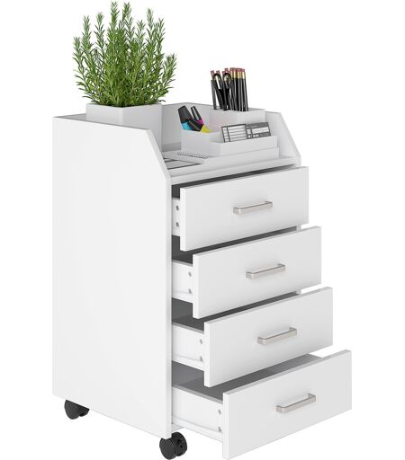 Vinsetto Cassettiera da Ufficio in Legno con 4 Cassetti, Ruote e Bordi Rialzati, 40x36x65cm, Bianco