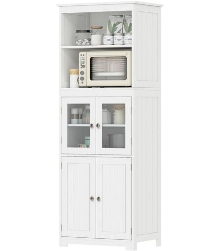 Descrizione: Necessiti di più spazio per tutti i tuoi utensili? Questa credenza da cucina HOMCOM è la soluzione definitiva ai tuoi problemi. Il nostro moderno mobile dispensa da cucina presenta un design pulito con pannelli in vetro e perline per dare un tocco di modernità all'arredamento. I suoi molteplici armadietti e ripiani offrono invece la possibilità di riporre senza problemi ogni tipo di utensile e alimento. Caratteristiche: ● Mobile dispensa con ripiani a 2 livelli e armadietti a 2 ante con ripiani interni per sistemare utensili, piatti e scatolame ● Il ripiano regolabile nell'armadietto inferiore consente di riporre facilmente e in modo organizzato oggetti di diverse dimensioni ● Il design verticale della credenza moderna consente di risparmiare spazio, ideale per piccole cucine, sale da pranzo, soggiorni, studi e lavanderie ● Dispensa cucina costruita in legno ingegnerizzato con una cinghia antiribaltamento per ottenere una maggiore stabilità ● Maniglie in metallo argentato ...