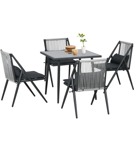 Outsunny Set da Giardino con 4 Sedie con Cuscini e Tavolo da Pranzo Quadrato in Vetro, Grigio Scuro Aosom