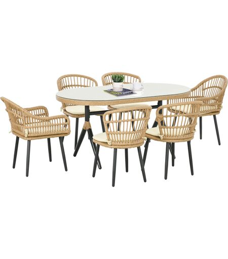 Outsunny Set da Giardino 7 Pezzi in Rattan PE con Tavolo da Pranzo 153x89x74 cm e 6 Sedie 52x62x78 cm con Cuscini Aosom