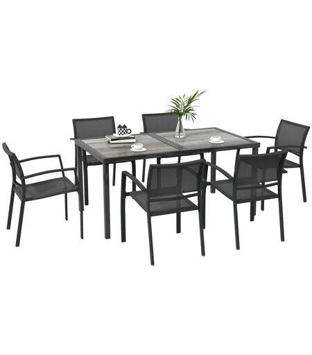 Outsunny Set da Giardino con 6 Sedie Impilabili in Tessuto a Rete e Tavolo Effetto Legno, Grigio