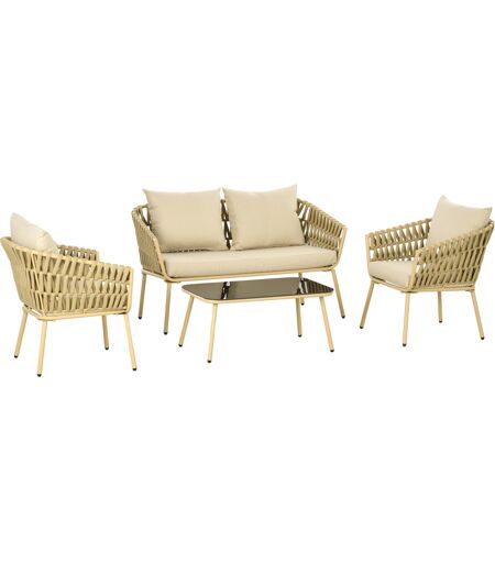 Outsunny Salotto da Esterno con Divano 2 Posti, 2 Poltrone con Cuscini e Tavolino in Vetro Aosom