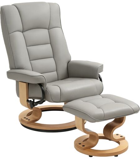 Homcom Poltrona Reclinabile a 130° con Pouf Poggiapiedi in Finta Pelle, Base Girevole e Dondolo, Grigio