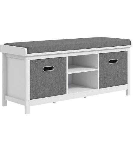 Descrizione: Metti in ordine tutte le tue scarpe con la nostra panca scarpiera HOMCOM da ingresso. I 2 cassetti in tessuto e i 3 ripiani aperti (di cui uno regolabile) offrono spazio sufficiente per le scarpe. Inoltre, il design della seduta con cuscino imbottito permette di cambiarsi le scarpe comodamente e senza preoccuparsi di restare in equilibrio. La combinazione di linee pulite bianche e tessuto grigio rende questo mobile per scarpe ottimo per arredare l'ingresso, il soggiorno o la propria camera. Caratteristiche: ● Il cuscino in tessuto traspirante effetto lino offre un'esperienza di seduta confortevole ● La fodera del cuscino con cerniera del mobile per scarpe è rimovibile e lavabile ● Il ripiano regolabile a 3 livelli della panca scarpiera può essere rimosso per riporre scarpe di diverse altezze ● Due cassetti in tessuto con maniglie sono ripiegabili per una facile conservazione ● Scarpiera moderna in truciolato con gambe supplementari per garantire la corretta stabilità ● La ...