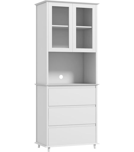 Homcom Dispensa Cucina Alta con Armadietto a 2 Livelli e 3 Cassetti, in MDF, 68x38x172 cm, Bianco Aosom