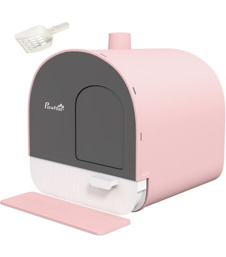 PawHut - Lettiera per Gatti Chiusa in pp con Vassoio Rimovibile Rosa e Grigio