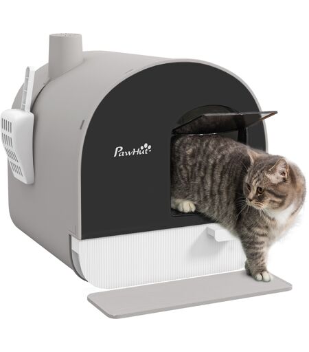 Pawhut Lettiera per Gatti Chiusa con Filtri, Paletta e Vassoio, Struttura in PP, 43x44x47cm, Grigio Aosom